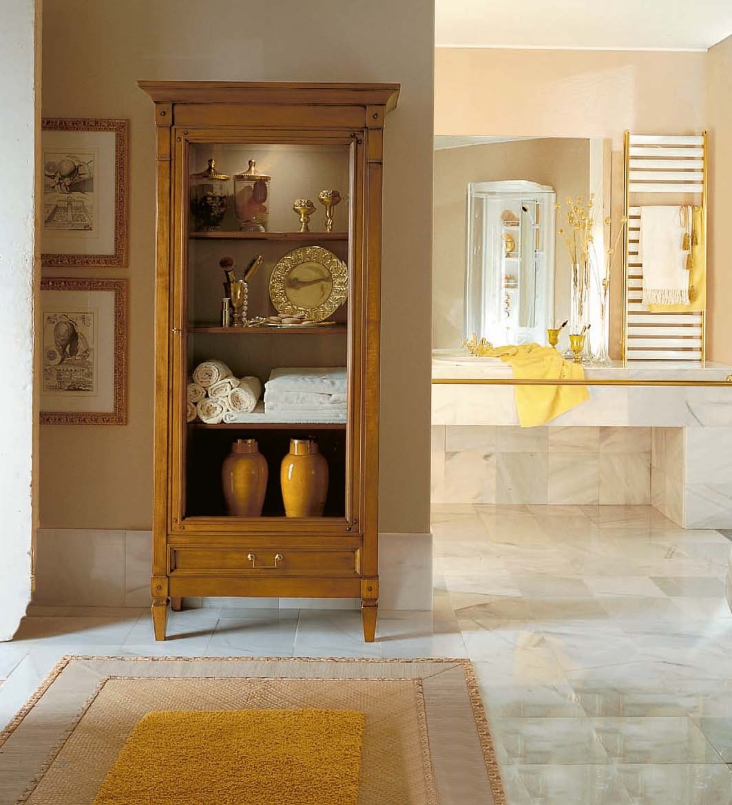 Showcase from Italian manufacturer SELVA. The model is narrow. The body is made of solid wood. Doors - glass. The model is executed in classical style. Colors according catalogue.