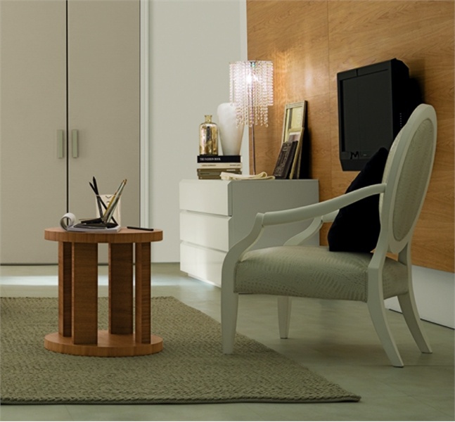 Constantia round coffee table from the Italian manufacturer Mobileffe. The finish is made of veneer wood. The color of this model coffee table - natural wood color.