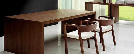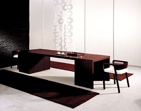 Dining table Le Pause from the Italian manufacturer Mobileffe. The finish is made of veneer wood. The color of this model dining table brown.