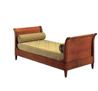 Single bed "direttorio" style from the Italian manufacturer Morelato Model with shaped headboard and footboard. The base under the mattress of beech. The manufacturer offers several colors in brown and beige tones. The bed is made in classic Italian style, to Supplement the attached two cylindrical pillows. This model is more suitable for daytime sleep.