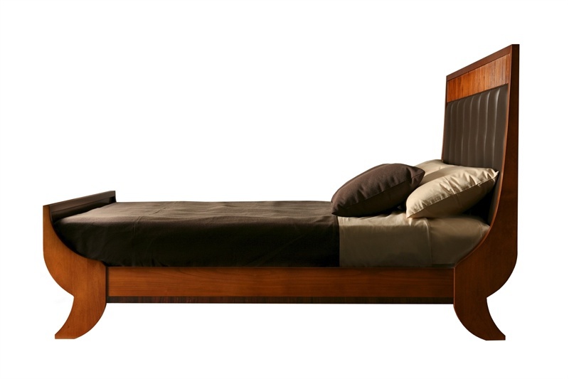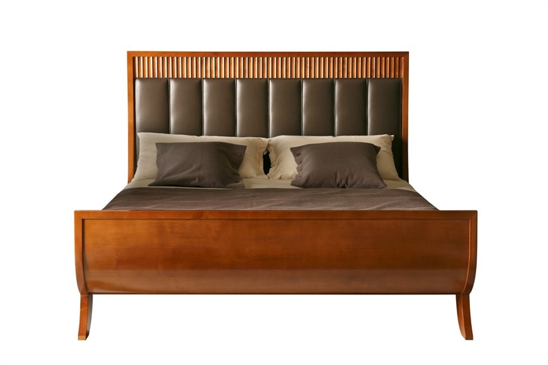 Double bed Biedermeier from the Italian manufacturer Morelato Model with shaped headboard and footboard. The base under the mattress of beech. The picture shows the model in the decoration of "maple". The manufacturer offers several colors of brown and gray tones. The bed is made in classic Italian style, the shape of the shell. The head is also knocked out of quality textile that gives the model the quality and comfort.