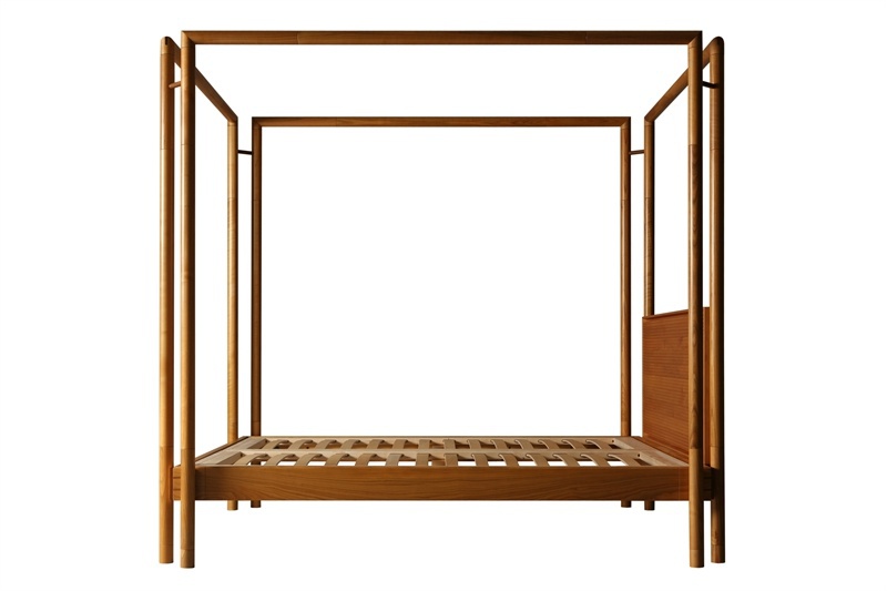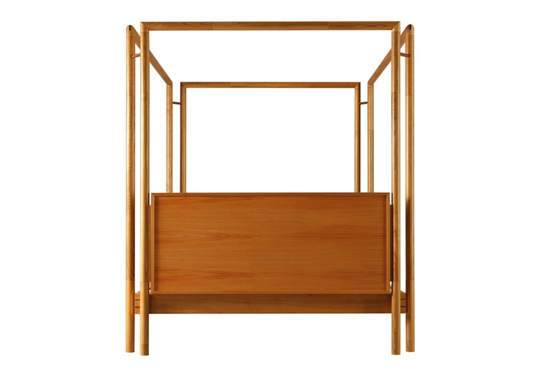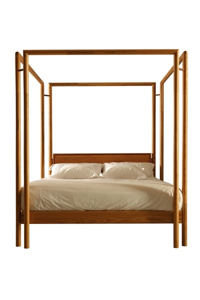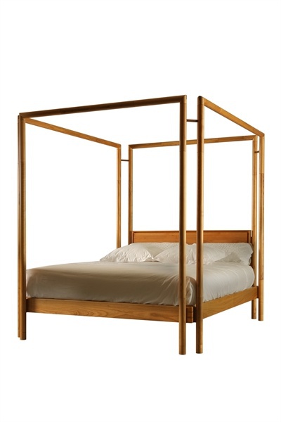 Double bed with canopy. Made in the spirit of traditional designs of the fourteenth century. Complemented by a wooden lattice-the basis under the mattress, the base on four sides are surrounded by bonded to each other under that "join" legs, corner posts and frame under the canopy. Headboard available in two versions - smooth wood, a possible softer version. Also available are options for finishing textiles or leather. The canopy bed is made entirely from solid cherry in a natural shade.