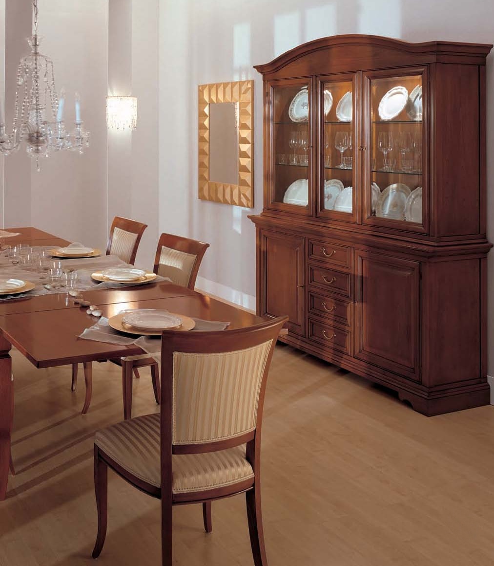 Buffet sideboard from Italian manufacturer Selva. The frame is made from solid wood in the finishing varnish. Doors and drawers of the sideboard glass. At the base are four drawers and two shelves with hinged doors on the sides. Model storage utensils for the living room is designed in classical style. Product color natural wood.