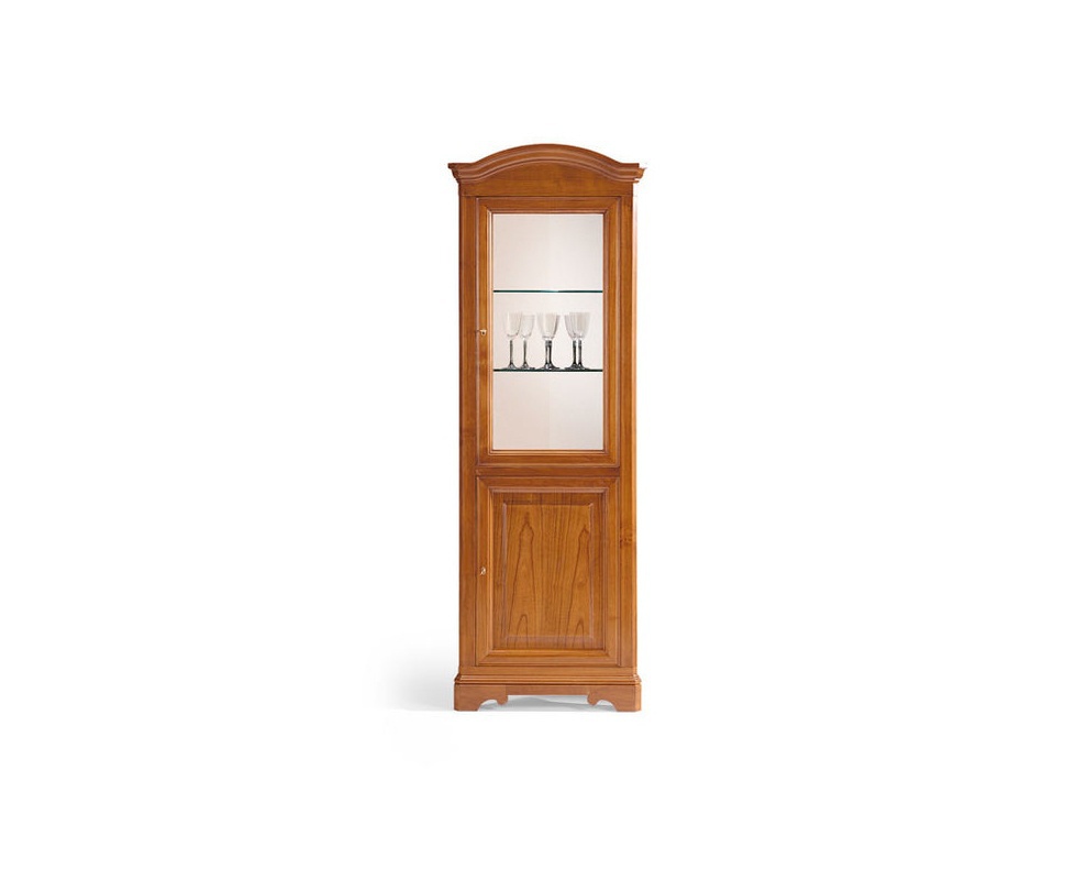 Corner showcase made of solid wood, SELVA. The classic model. The doors are made of glass. This model is available in natural wood color. Combines the compactness and functionality.