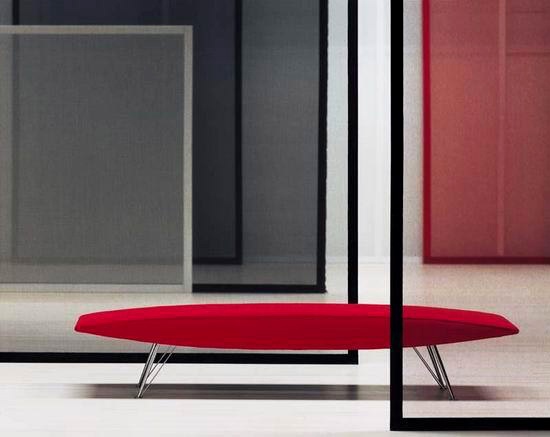 Bench Plana from the Italian manufacturer Moroso. Upholstered bench with legs made of chrome plated steel. Model with a frame made of wood, the filler is resistant polyurethane foam of varying stiffness. Bench in modern style will complement the interior of your living room or hall, and that fit perfectly into the public room.
