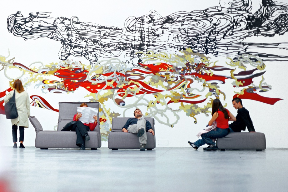 The Highlands sofa Italian manufacturer Moroso. Design solution from Urquiolq Patricia. Modular system of seats on a wooden frame with a layer of polyurethane foam of differentiated density, supplemented with a layer of polyester fiber. Feet in black polypropylene. Folding backrest and armrests on the inner steel frame, equipped with a tilt mechanism, take two positions. The model elements can be connected by fastenings of black plastic. The model is made in modern style. Colours in stock.