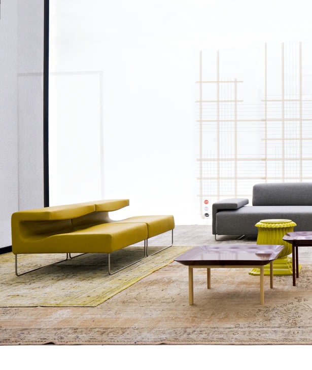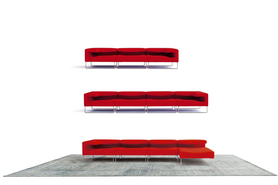 The sofa is modular based with chrome steel Lowseat, Moroso