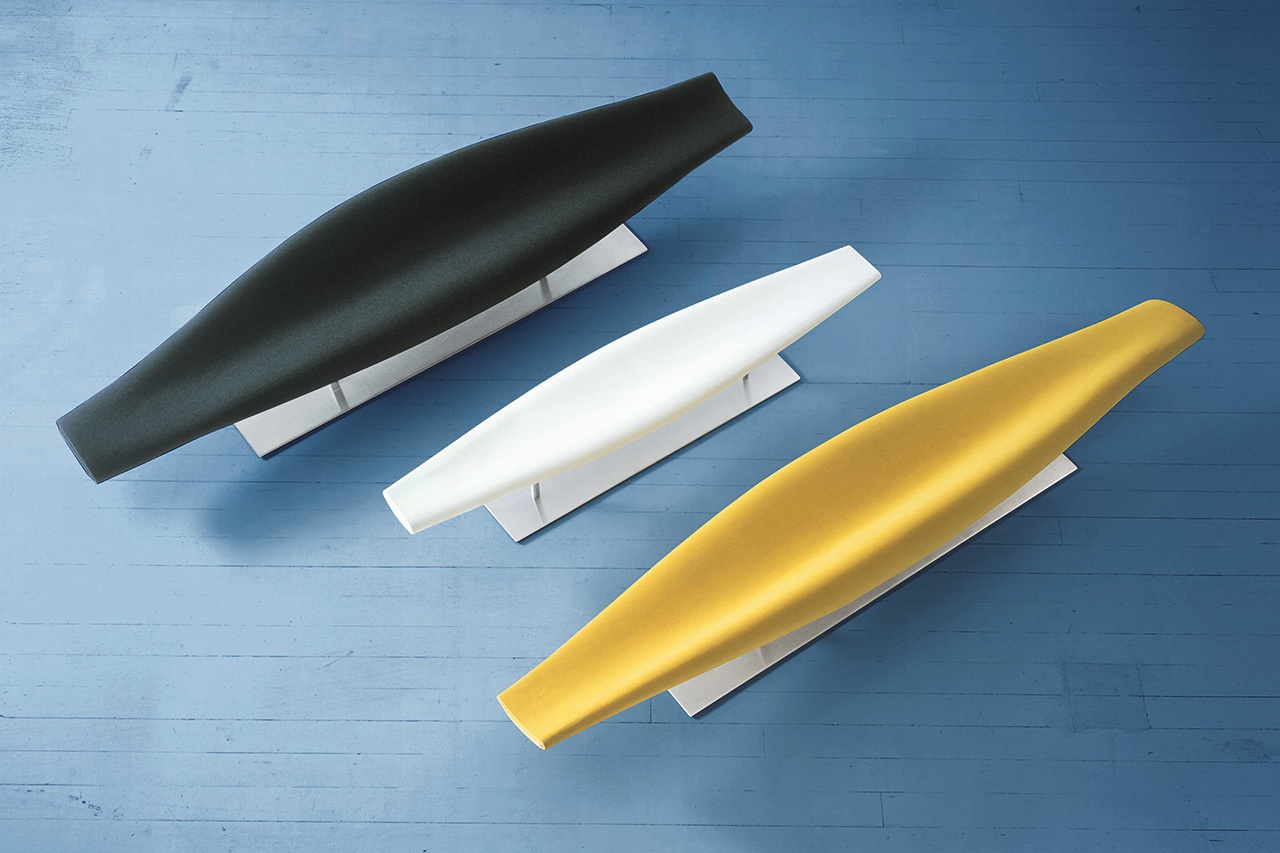 Soft bench Inout from the Italian manufacturer Cappellini. Frame of bench is made of stainless steel. The upholstery is presented in a leather and textile embodiment, the filler is polyurethane foam. The color of this model of bench you can choose from the catalogue of the manufacturer.