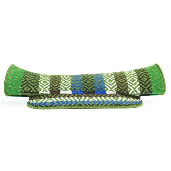 Bench Reii from the Italian manufacturer Moroso. Bench of unusual form on a frame of painted steel. The color pattern obtained by weaving synthetic ribbons of different colors, made by hand. The original model is designed for the street.