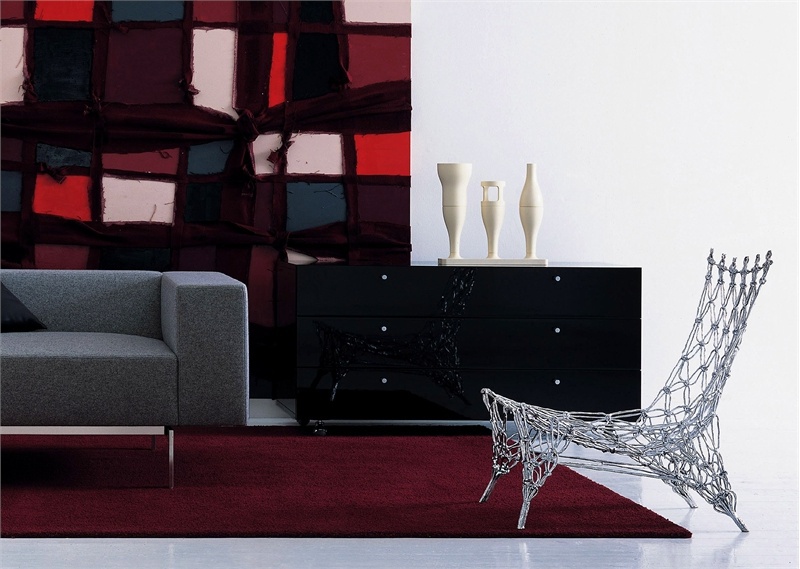 Knotted chair, Cappellini and from the Italian manufacturer Cappellini. Chair frame is made of metal. The model is woven from threads of carbon fibers and copper to the processing of epoxy resin. The color of this chair model you can choose in the catalog of the manufacturer.