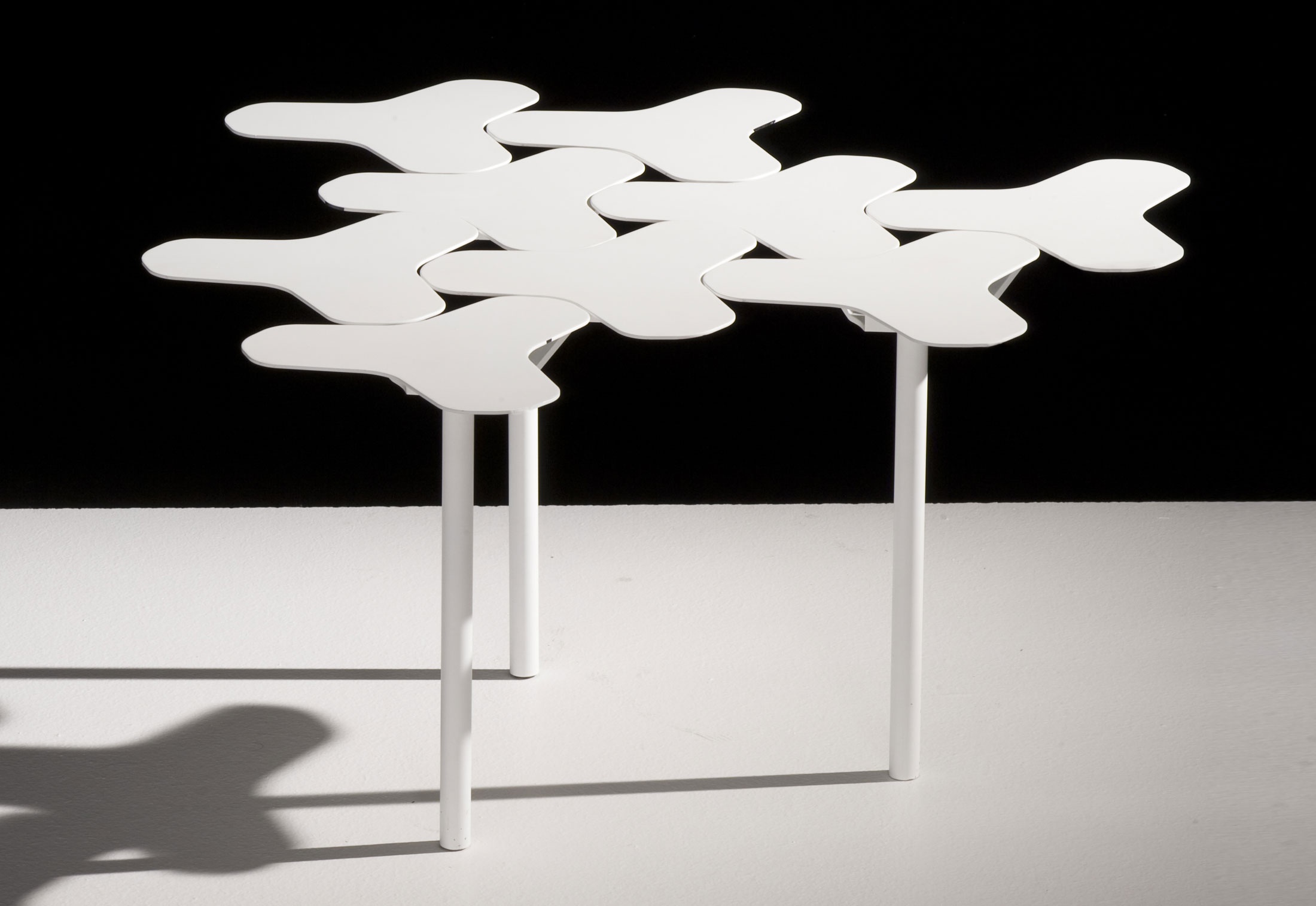 Table Nanook from the Italian manufacturer Moroso. Table is made of steel, painted in matte black or white tone, high gloss finish gold or chrome. Colors to choose from the catalog factory. Several models can connect to each other or be prepared to create a two-tier design rack. The collection also includes an armchair and a chair. Using multiple models it is possible to create different compositions. Due to its unusual shape, the model designer will create views as home interior and office. You can use and on the outdoor terrace.