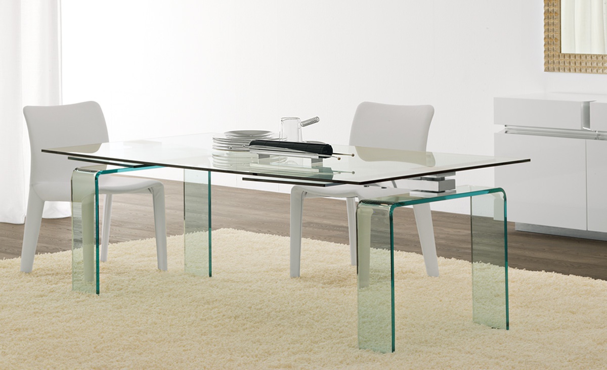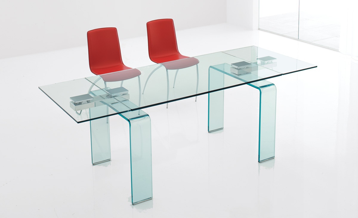 Azimut table from Italian manufacturer Cattelan Italia. The frame is made of glass, and the slide mechanism is made of steel. Colors of this model you can choose in the catalog of the manufacturer.