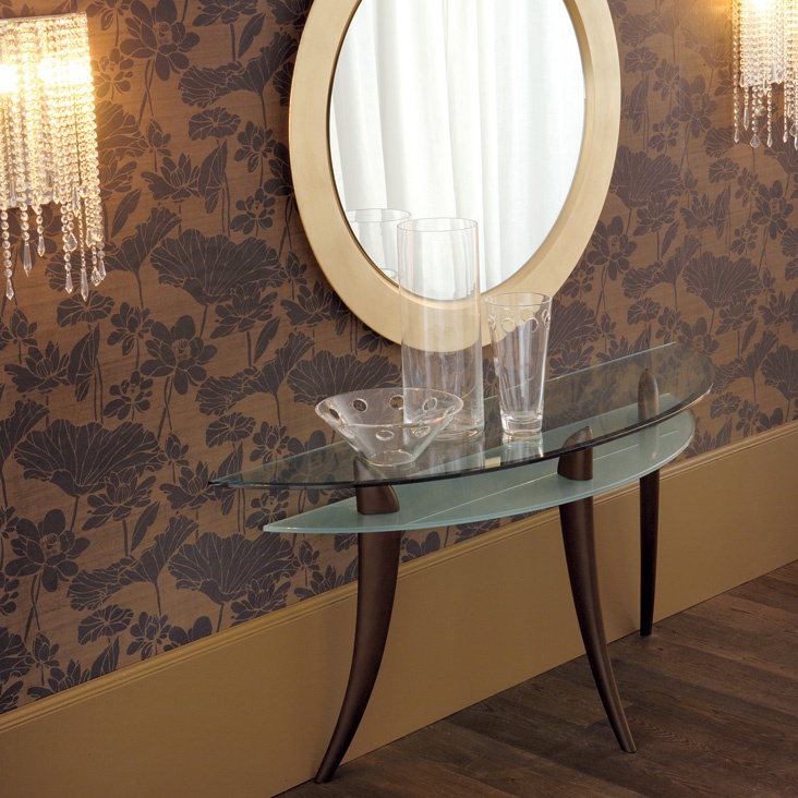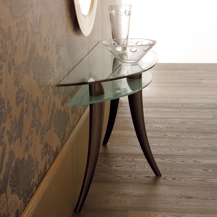 The Blade console from the Italian manufacturer Cattelan Italia. Console legs made from beech. The counter is made of transparent glass. The model is in modern style.