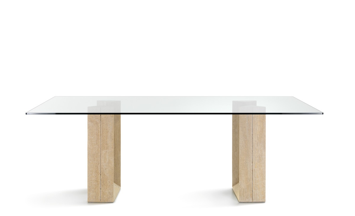 Table Diapason from Italian manufacturer Cattelan Italia. Frame of table is made of glass. The base of the table made of marble or stone. The color of this model of table is transparent.