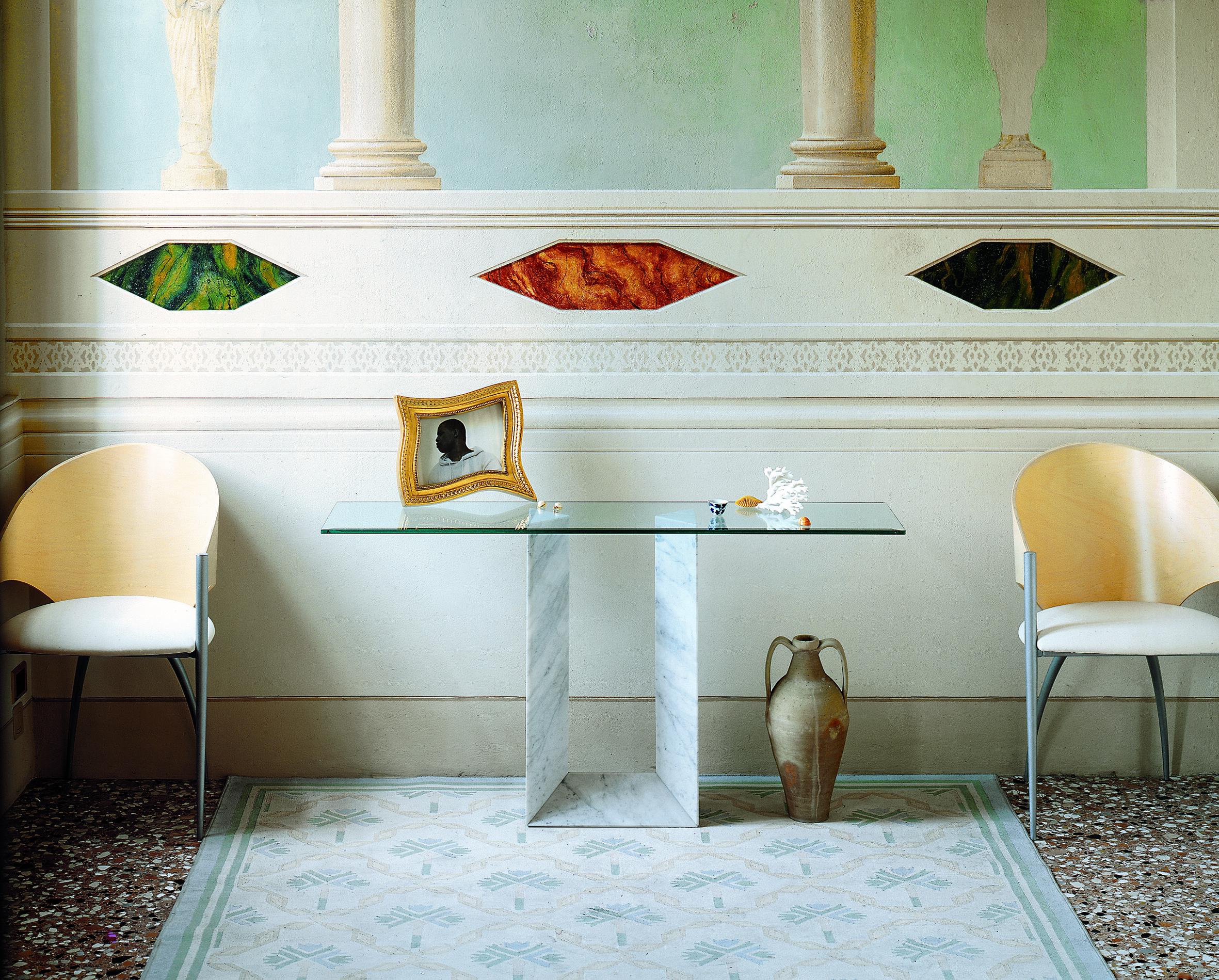 Console Diapason from Italian manufacturer Cattelan Italia. The table-top console is made of glass. The frame is made of marble and stone. The color of this model of table is transparent.
