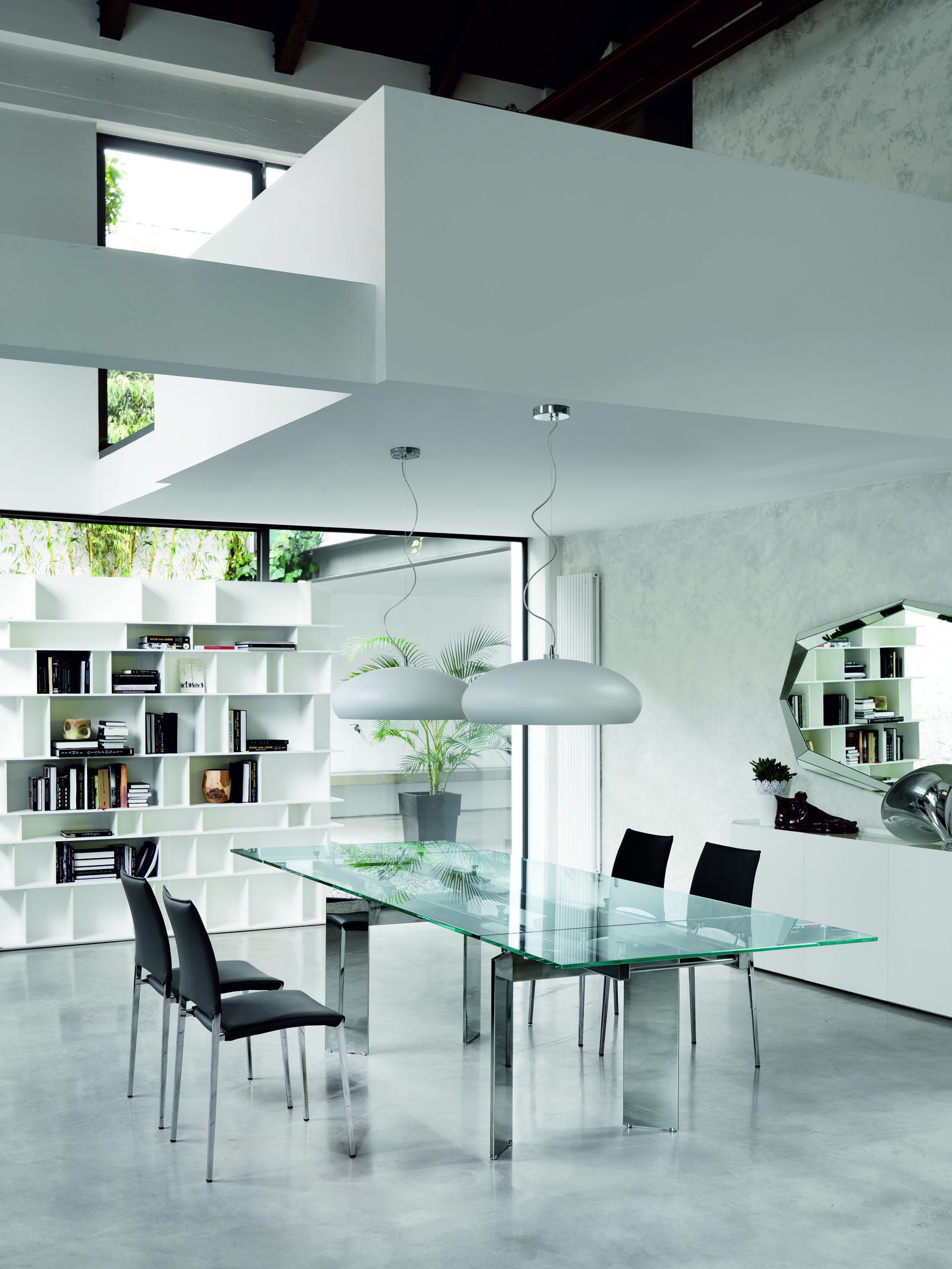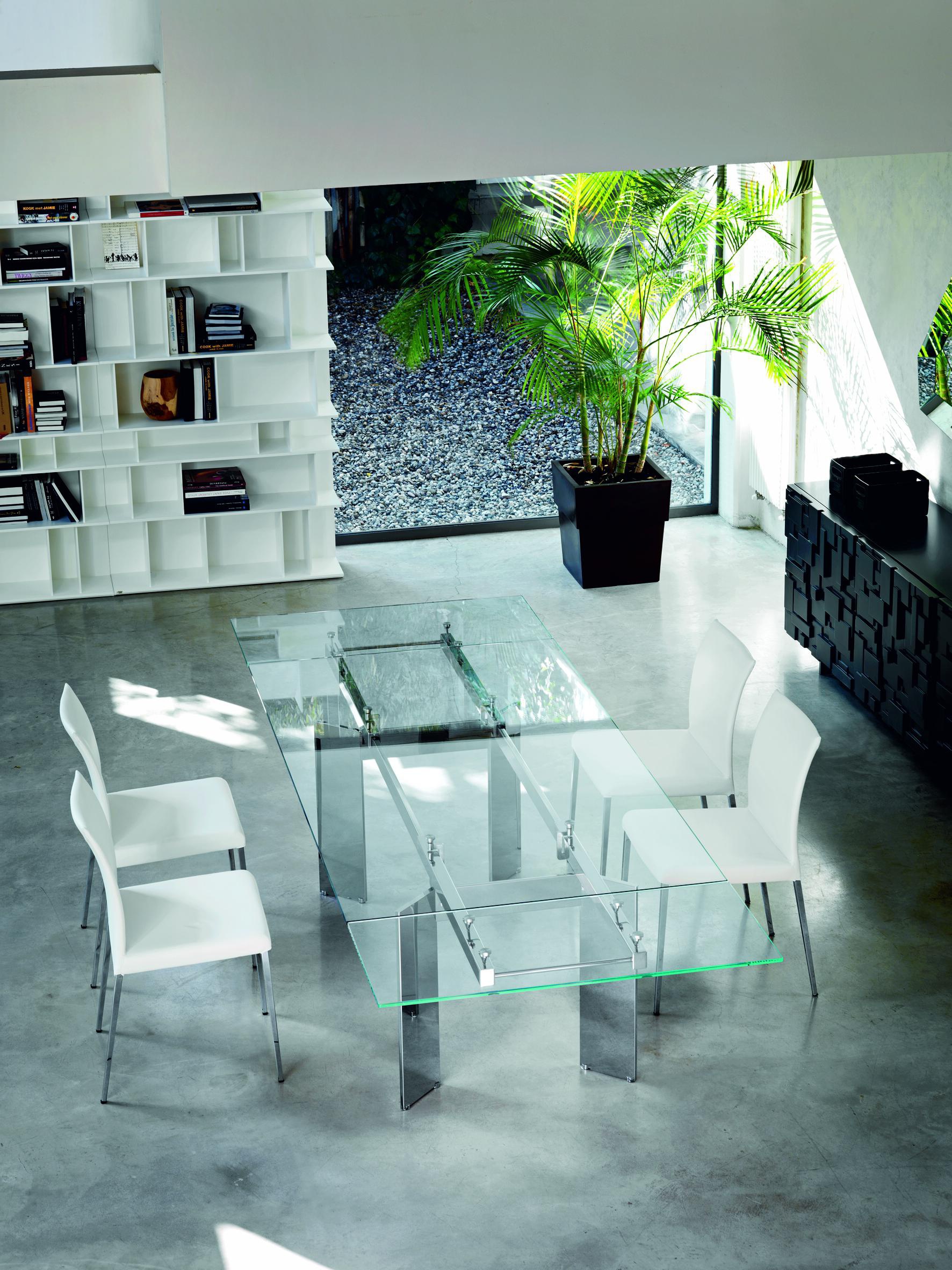 Dining table sliding glass and steel Elan, Cattelan Italia
