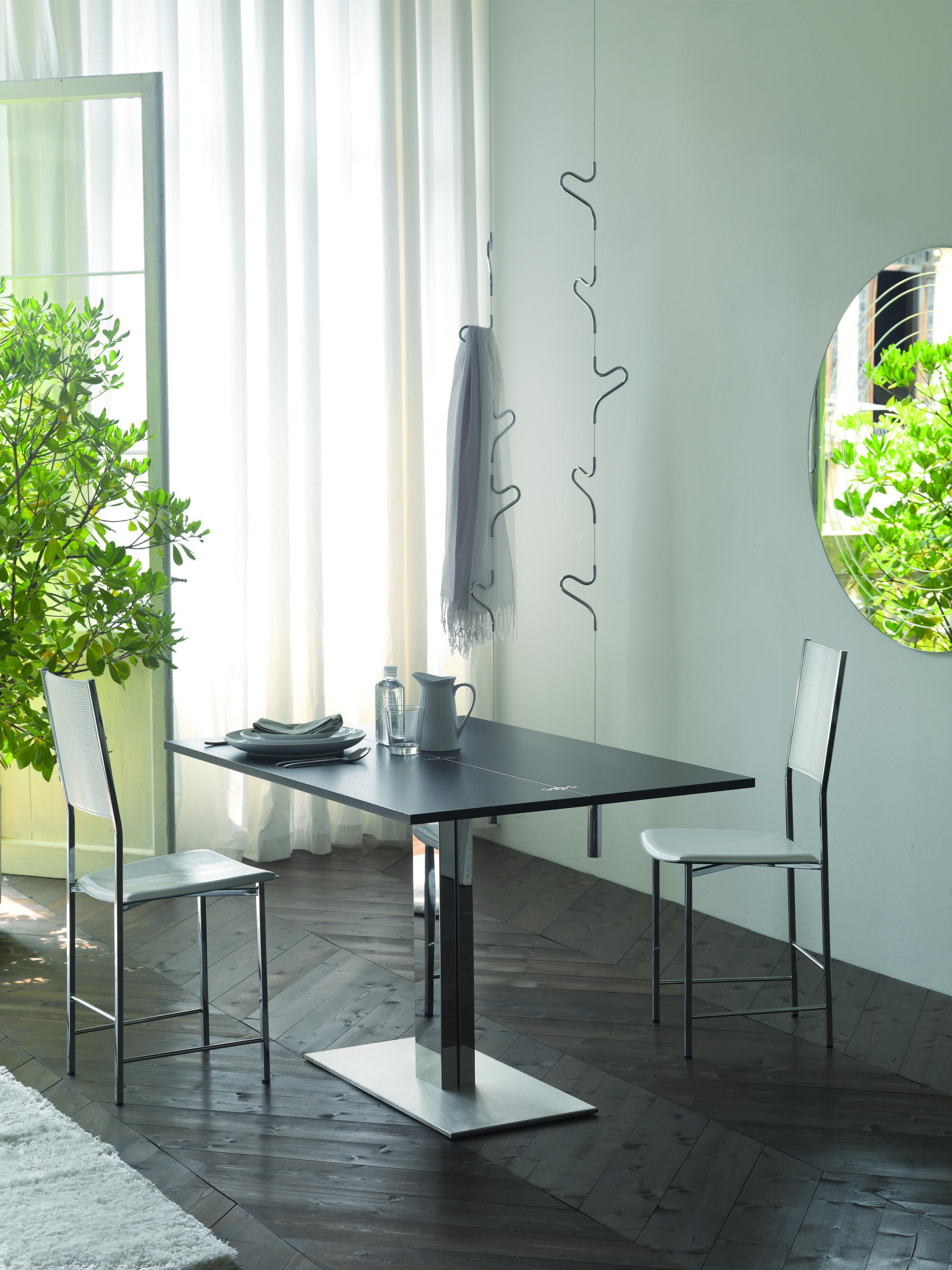 Console Elvis from the Italian manufacturer Cattelan Italia. The console frame is made of stainless steel. Top made of laminated black. The console is easily converted into a table, convenient for storage. Excellent functional model in a contemporary style.