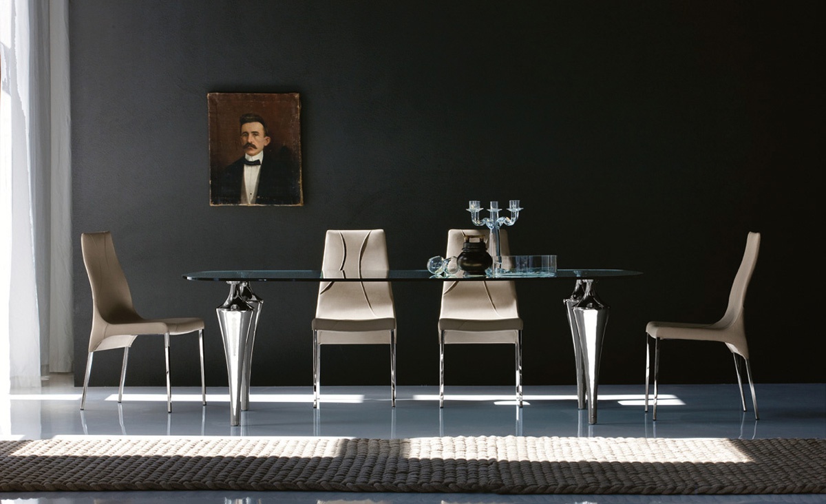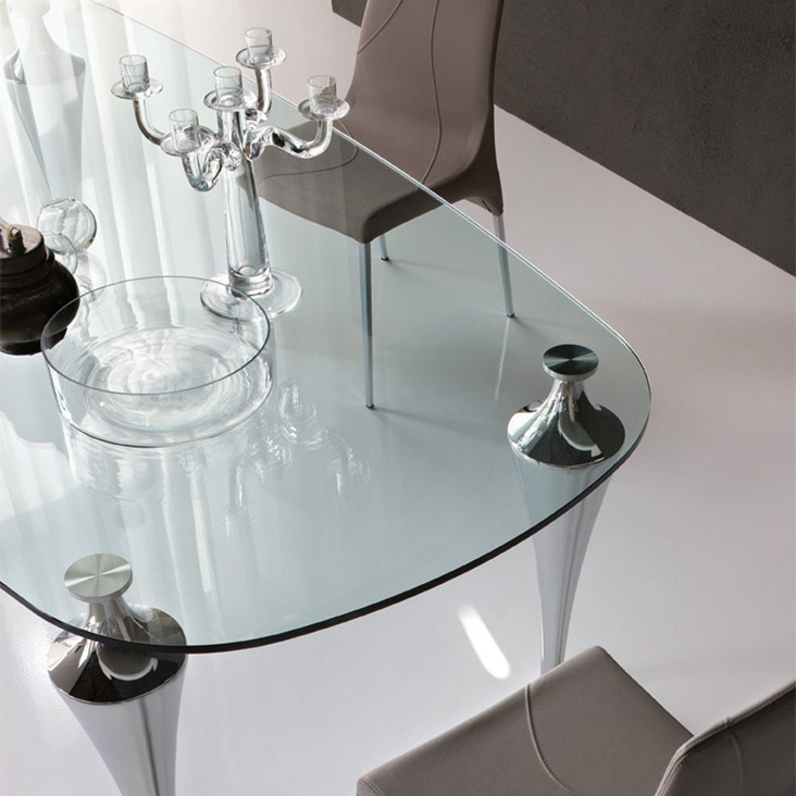 Table Etro from Italian manufacturer Cattelan Italia. Table legs made of chrome-plated steel.The table top is made of glass. The color of this model of table is transparent.