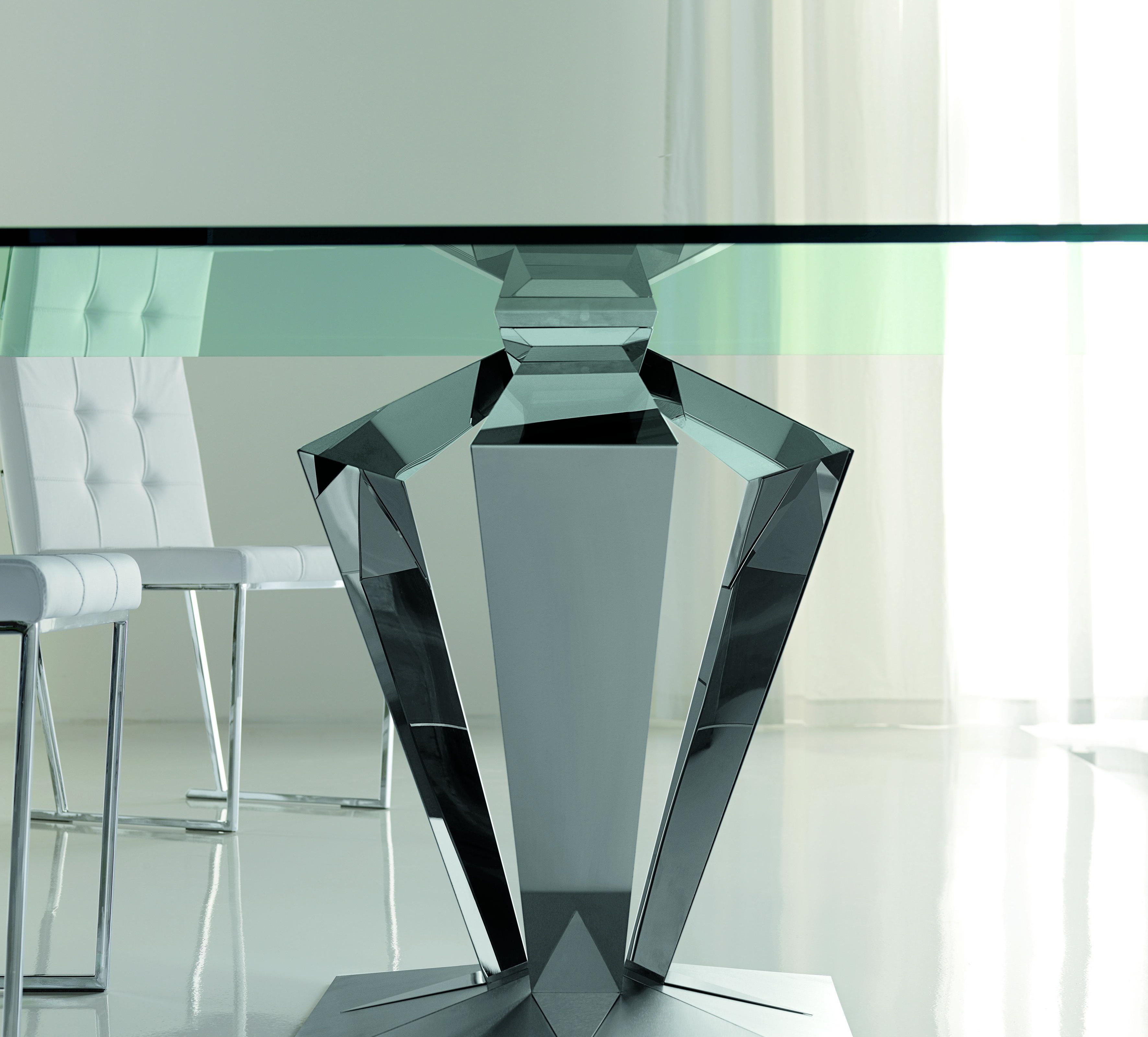 Table Gotham from the Italian manufacturer Cattelan Italia. The base of the table is made of stainless steel and the tabletop is made of tempered glass. The color of this model of table is transparent.