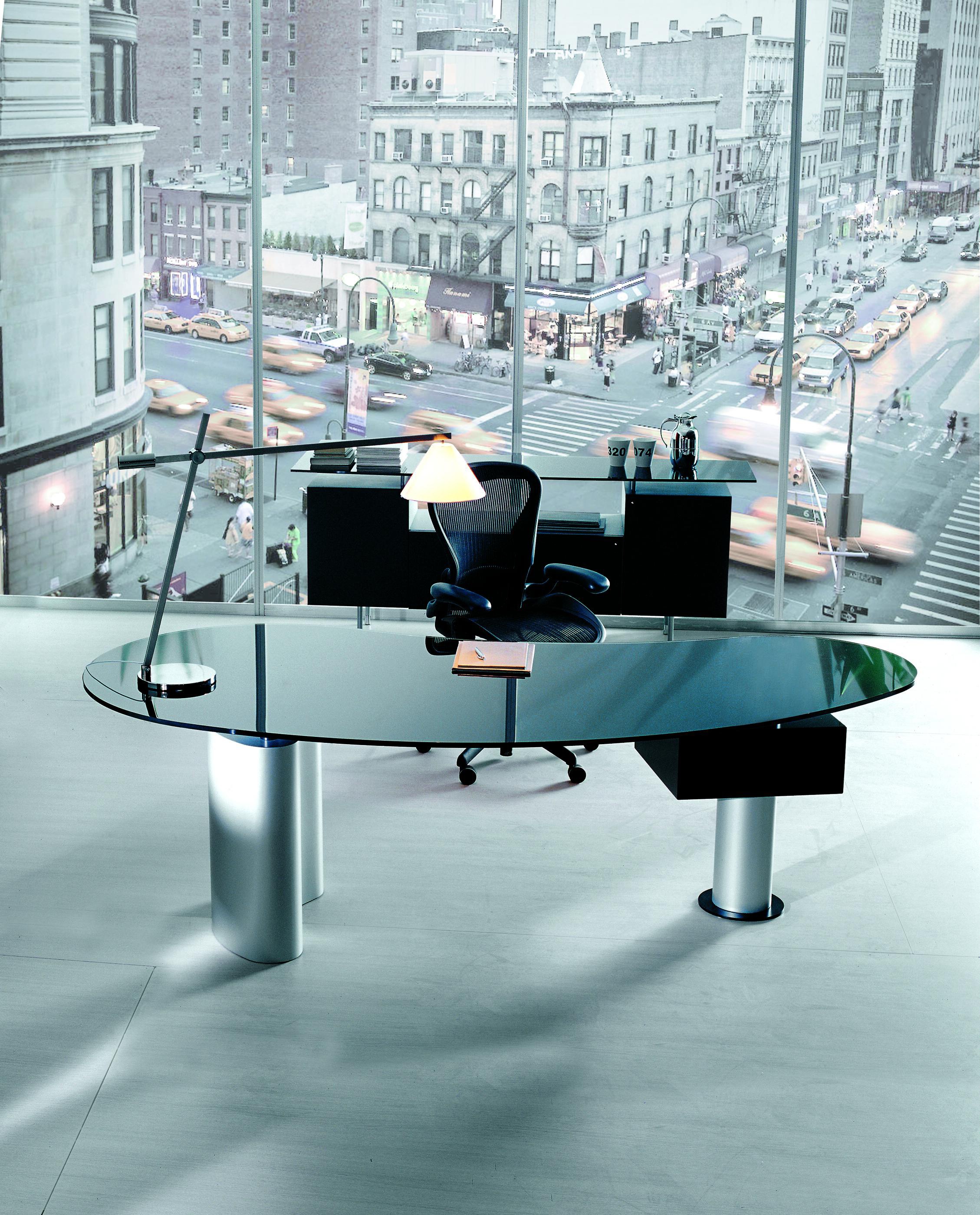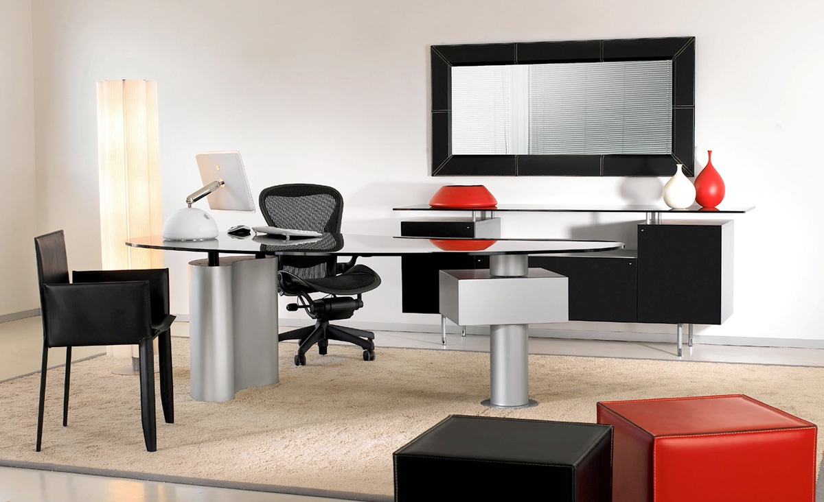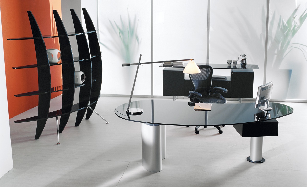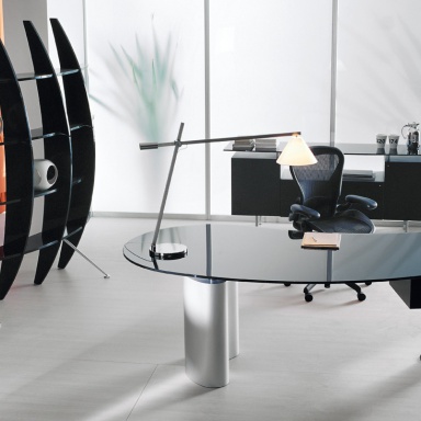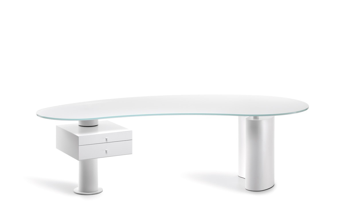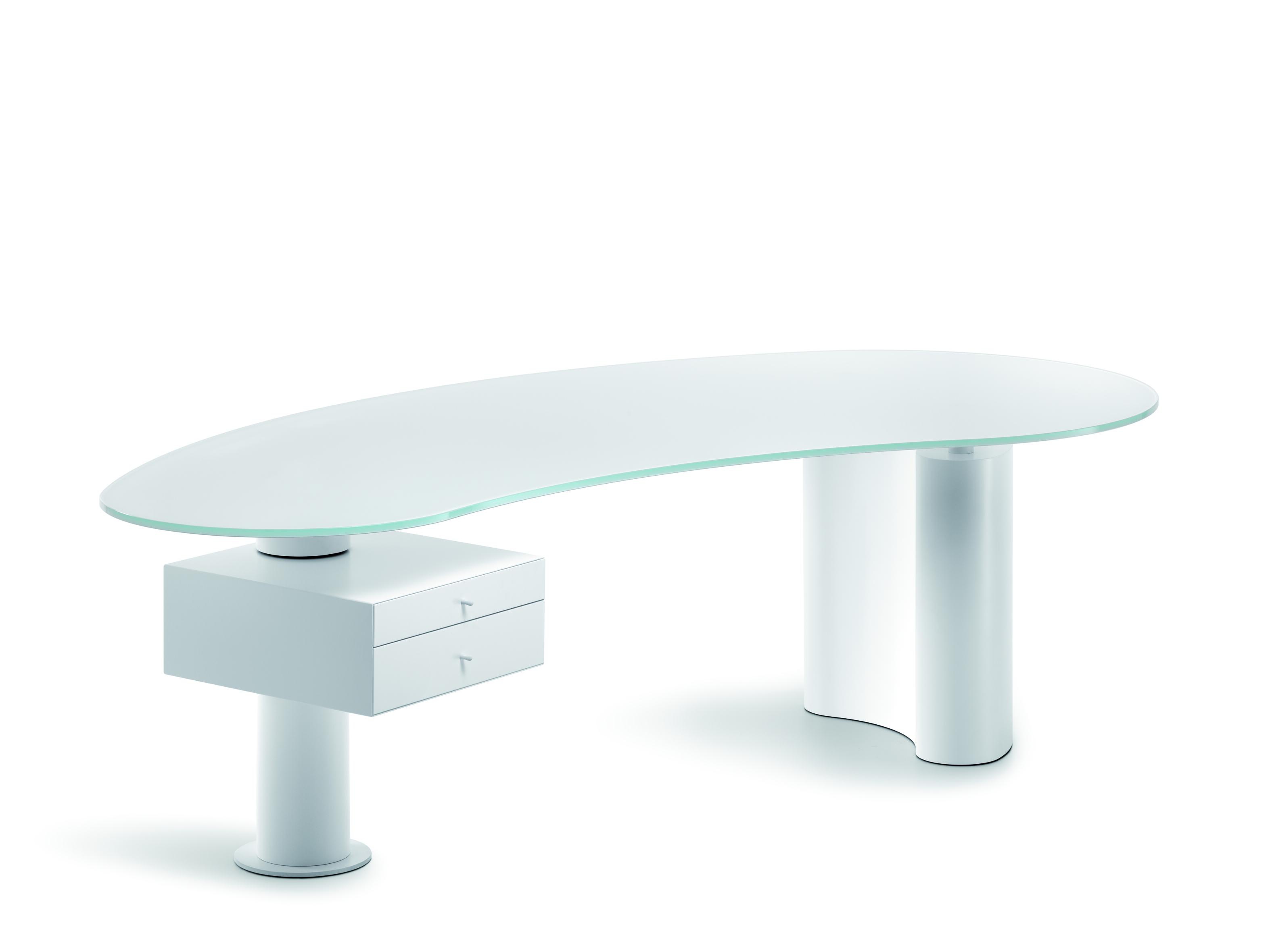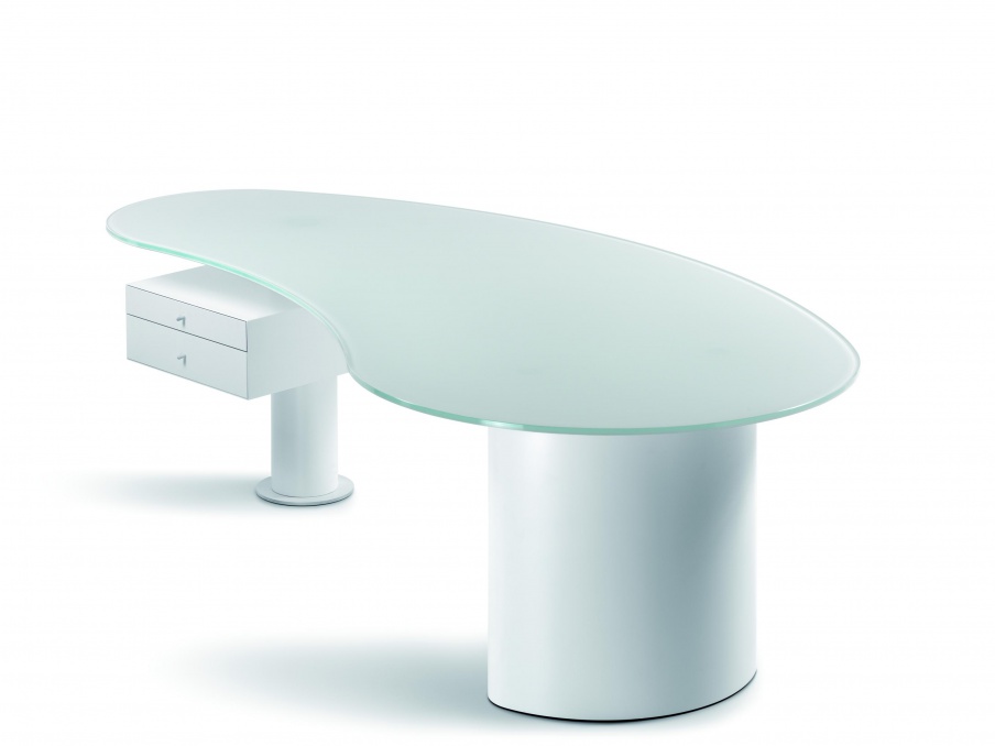 The Houston Desk from Italian manufacturer Cattelan Italia. The base of the table with silver, Matt-black or Matt-white base made of wood and metal, and the tabletop is made of glass. Colors of this model you can choose in the catalog of the manufacturer.