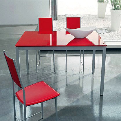 The Max table from Italian manufacturer Cattelan Italia. The table top is made of colored glass and laminate, and the frame is made of metal. Colors of this model you can choose in the catalog of the manufacturer.