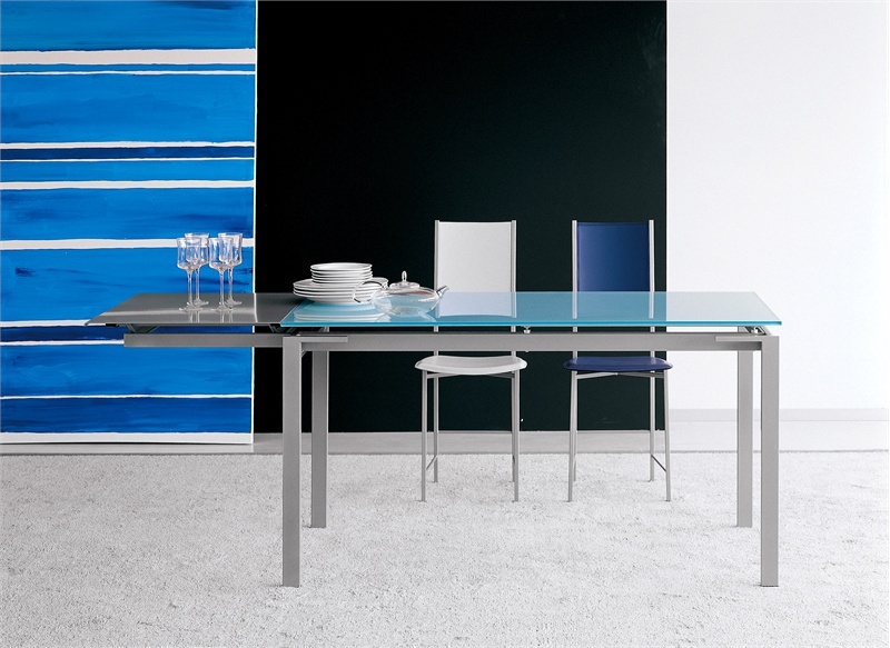Dining table sliding on a steel frame with a tabletop made of glass or laminate Metro, Cattelan Italia