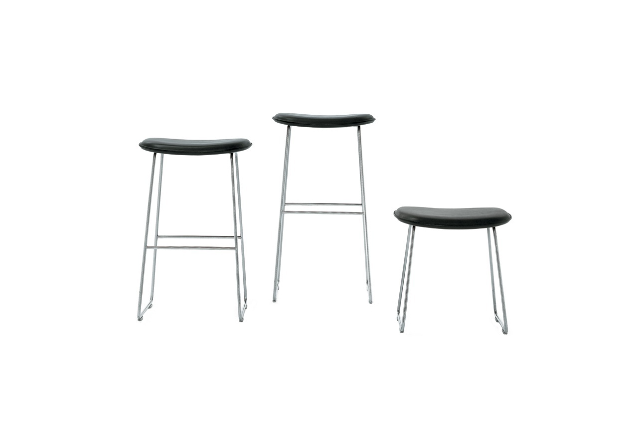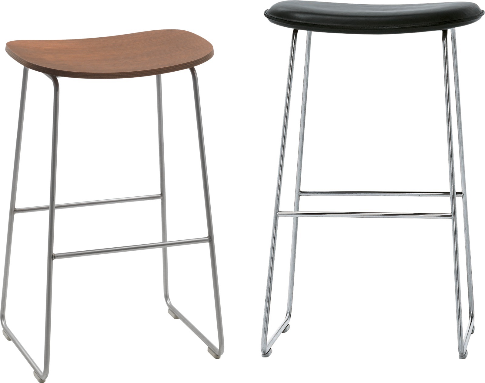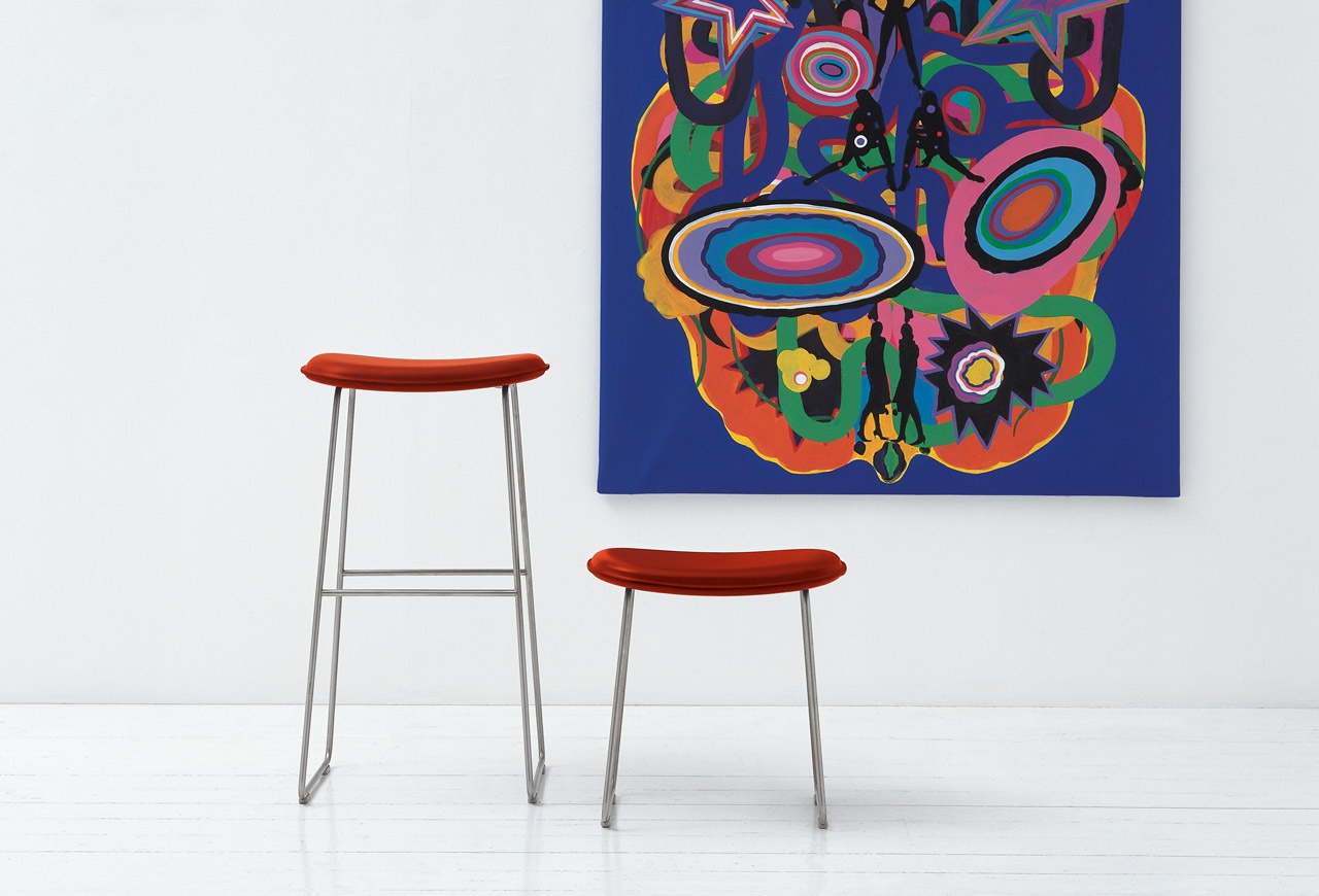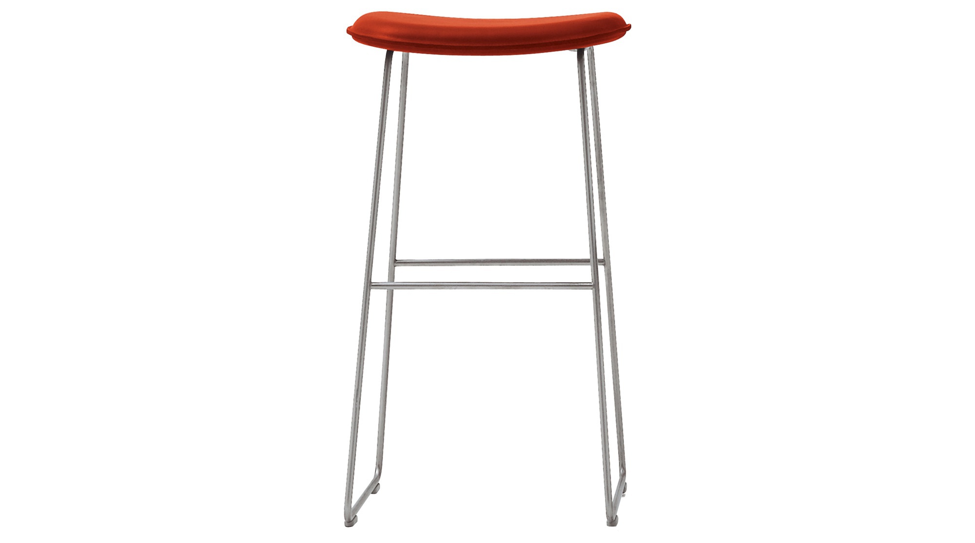 Morrison bar stool from the Italian manufacturer Cappellini. Chair legs are made of stainless steel, and internal seat made of wood. The upholstery is presented in a leather and textile version, and the filler is polyurethane foam. Color in stock.