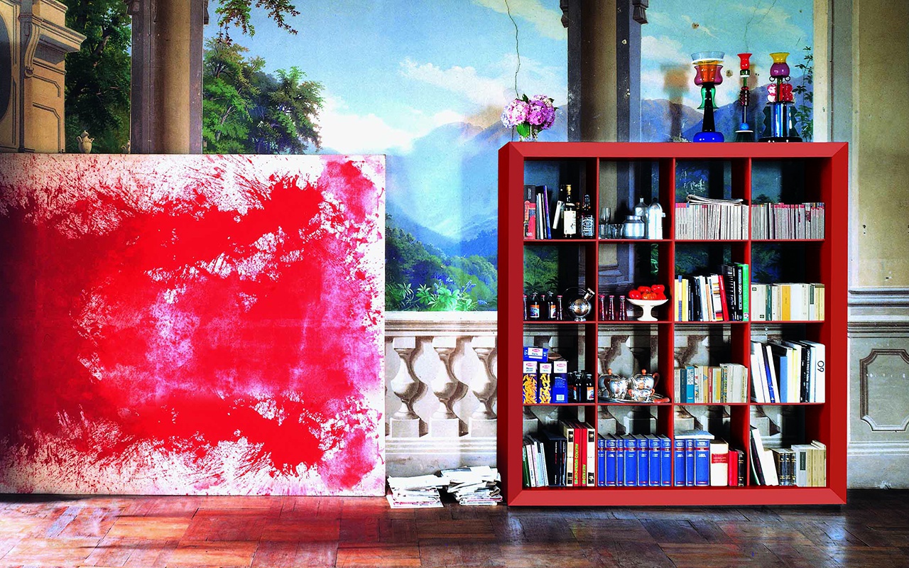 Passepartout bookcase from the Italian manufacturer Cappellini. Consists of a framework of wood can be placed the books on one or both sides.Finish matte or polished lacquer. Available in all colors of the collection. It can be used as a stand-alone unit or integrated. Grey plastic feet.The modern design.