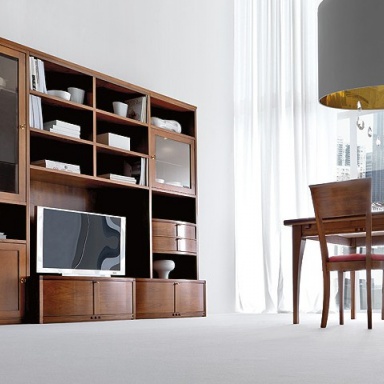 Modular storage system with space for TV (Signorini & Coco). Frames, fronts, tops and sash - an array of European cherry plywood; the drawers and shelves - natural wood. The model can be fully lacquered opaline. Fittings made of bronze and iron in modern style.