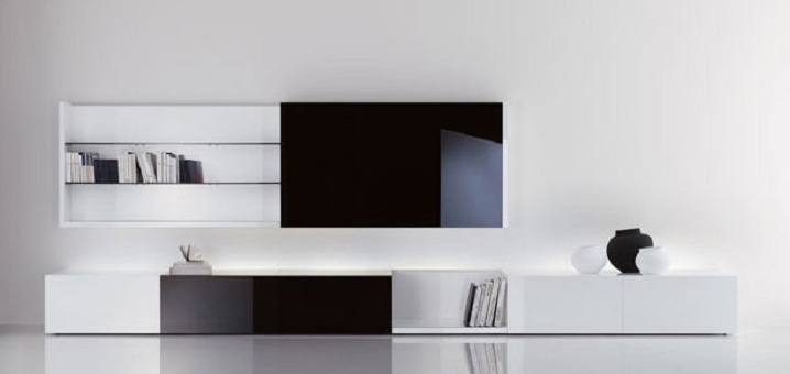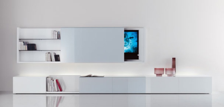 Furniture for TV Composizioni-2 from the Italian manufacturer Acerbis. New functional elements of this collection are designed to go beyond traditional patterns, outlining passive recreation area. Design solution from Lodovico Acerbis and Massimo Castagna provides support and real integration in the interior audio and video, elegantly hidden in the wardrobe. Modern design collection is ideal for closet, loft, techno etc.. the Frames are made of solid wood. There are different shelves, fixtures and openings for wiring and related equipment. Colours and accessories in stock.