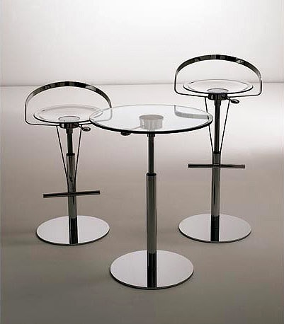 Cayman bar stool from the Italian manufacturer Fasem. A model with a built-in mechanism gas-lift. The seat is made of transparent polycarbonate in a leather finish. The base, footrest and backrest of stainless steel. Great product for a bar in modern style.