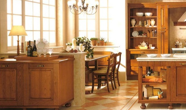 The kitchen is Cecilia from the Italian manufacturer Cucine LUBE. The frame is made of particle Board, surface: melamine, finish - veneer wood. A chic model for modern interiors. Colors: yellow, brown.