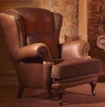 3 Bergere chair from the Italian manufacturer Mantellassi. The model with high backrest upholstered in leather or fabric. A great choice for the living room in a classic style. Product color brown.
