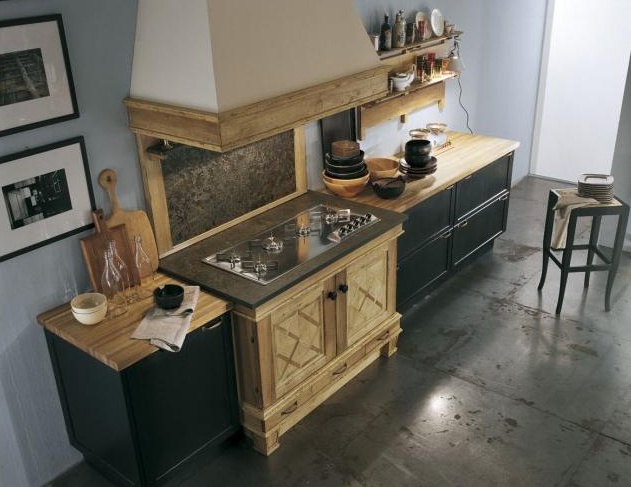 Kitchen Sake 1 from the Italian manufacturer Marchetti. The frame is made of MDF and solid walnut, finishing - veneer wood treatment varnish. Pretty model for kitchen in ethnic style. Colors: black, natural wood color.