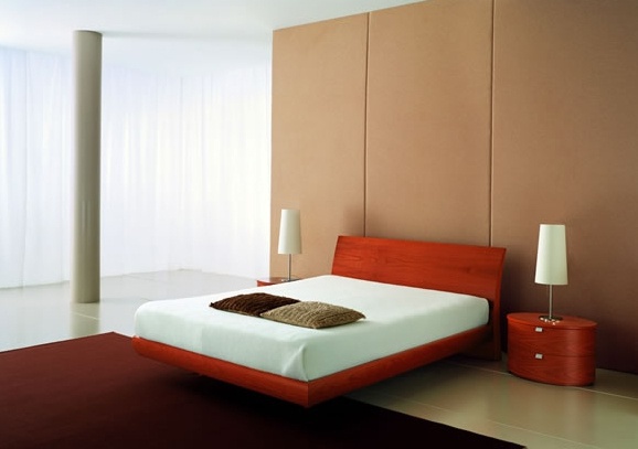 Aneli double bed from Italian manufacturer Pescarollo. The trim is made of veneer wood, and the legs are made of metal. The upholstery is presented in genuine leather and textile. The color of this model, the bed is white and red.