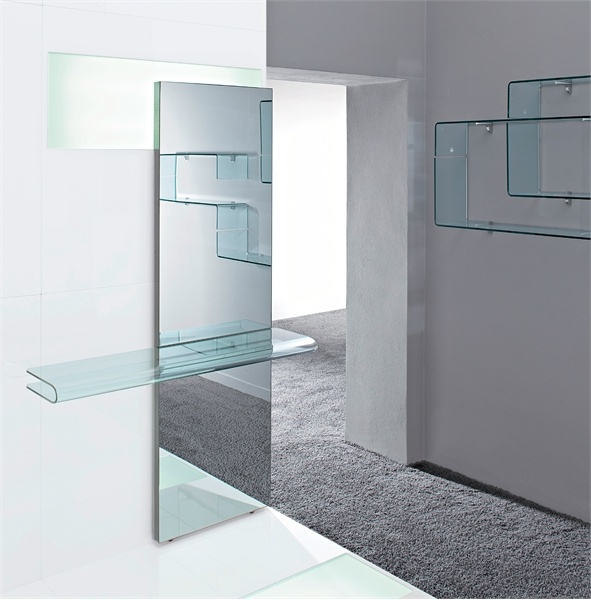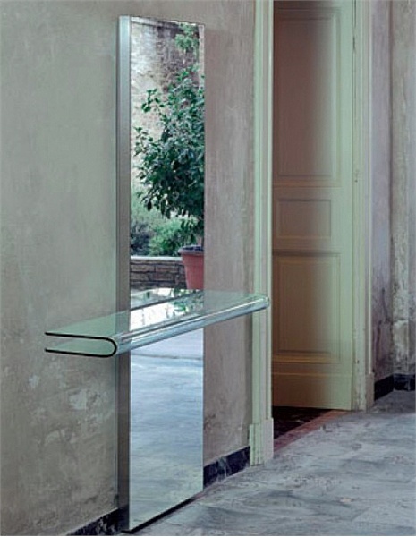 The mirror Let me see from the Italian manufacturer Fiam. Model with shelf, made of curved glass with stainless steel frame. The product is wall mounted rectangular shape is designed for hall or hallway in style. Available color transparent.