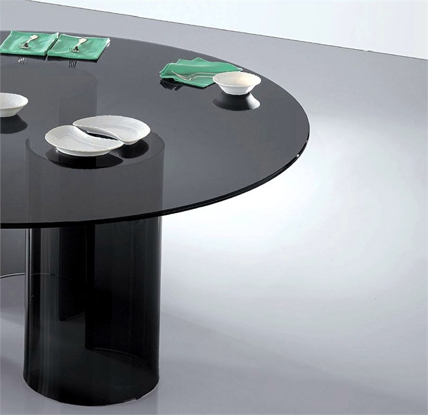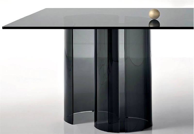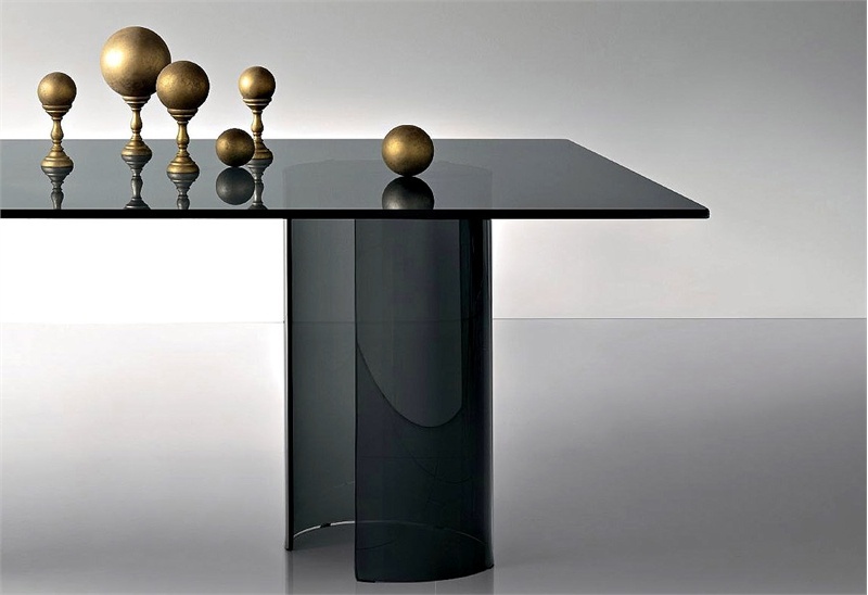 Luxor dining table from the Italian manufacturer Fiam. The model of laminated glass: plate frosted or bronze glass is glued between. A good choice for dining room design decoration. Product color dark.