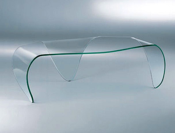 Manta coffee table from the Italian manufacturer Fiam. The model of bent glass, can withstand loads up to 70 lbs. Excellent choice for a living room in modern style. Product color - transparent.