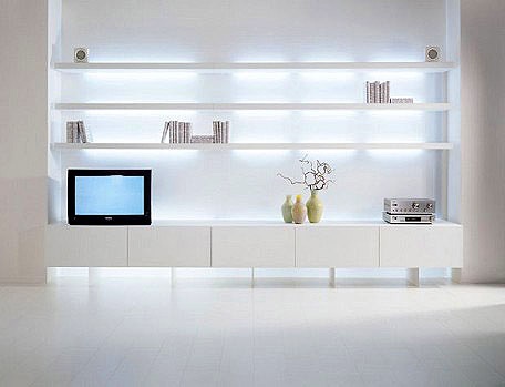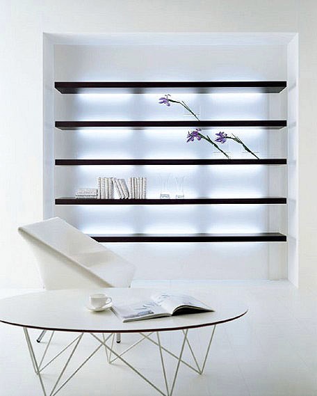 Shelf Wall shelves from Italian manufacturer Acerbis. The model is made in modern style. Shelves made of chipboard, metal frame, the surface is lacquered shelves.