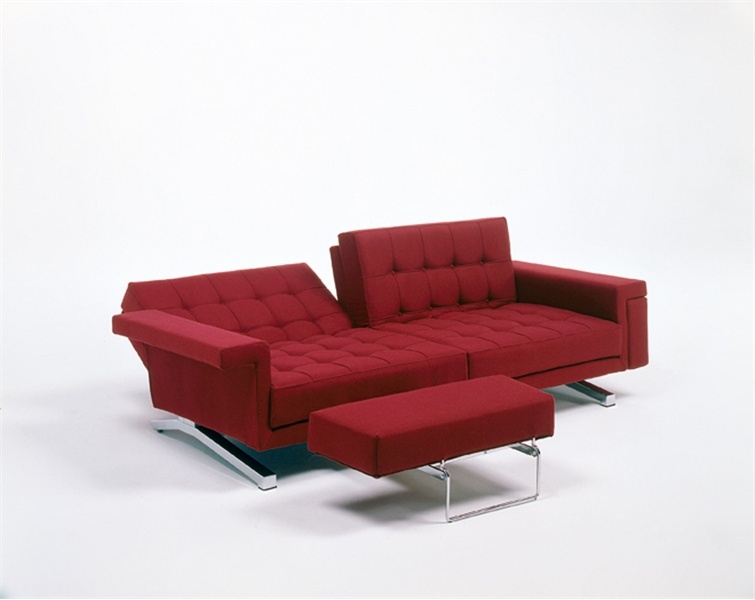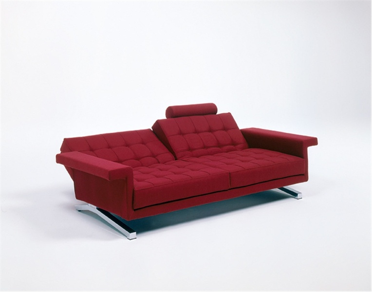 Sofa from Top Italian manufacturer Futura. The relaxation model with metal legs, upholstered in textiles from the range of the campaign. The backrest is adjustable - can be installed in any position. From armrests slide out footrest, when folded they are the side of the sofa. Cushions seat and back cushions with decorative stitch. A good choice for living room in modern style. Product color Burgundy.