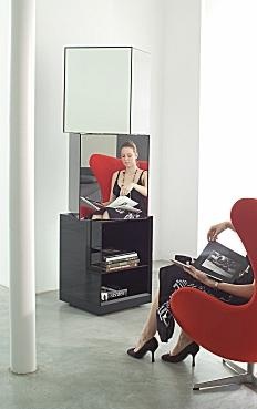 Rack Cube from the Italian manufacturer Gallotti & Radice. The back wall is made of mirrored glass, side panels - painted glass, lacquered finish. The model consists of three rotating module. The perfect choice for dining room in modern style. Colours: milk, black.