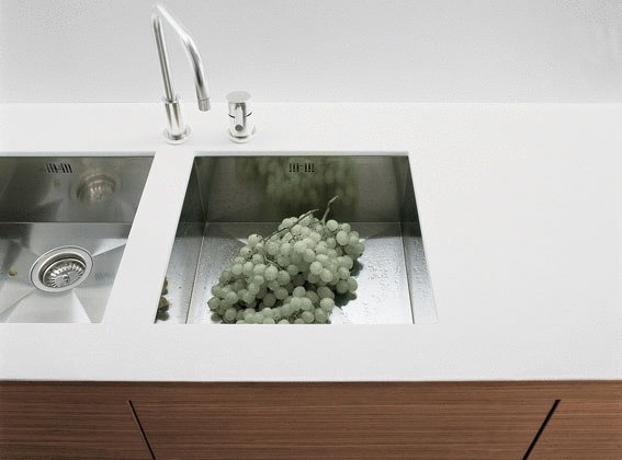 Alea kitchen by Italian manufacturer Varenna. Kitchen in a modern style. The frame is made from solid wood, finish options: veneer cherry, walnut, oak, Matt or glossy lacquer colours in stock.