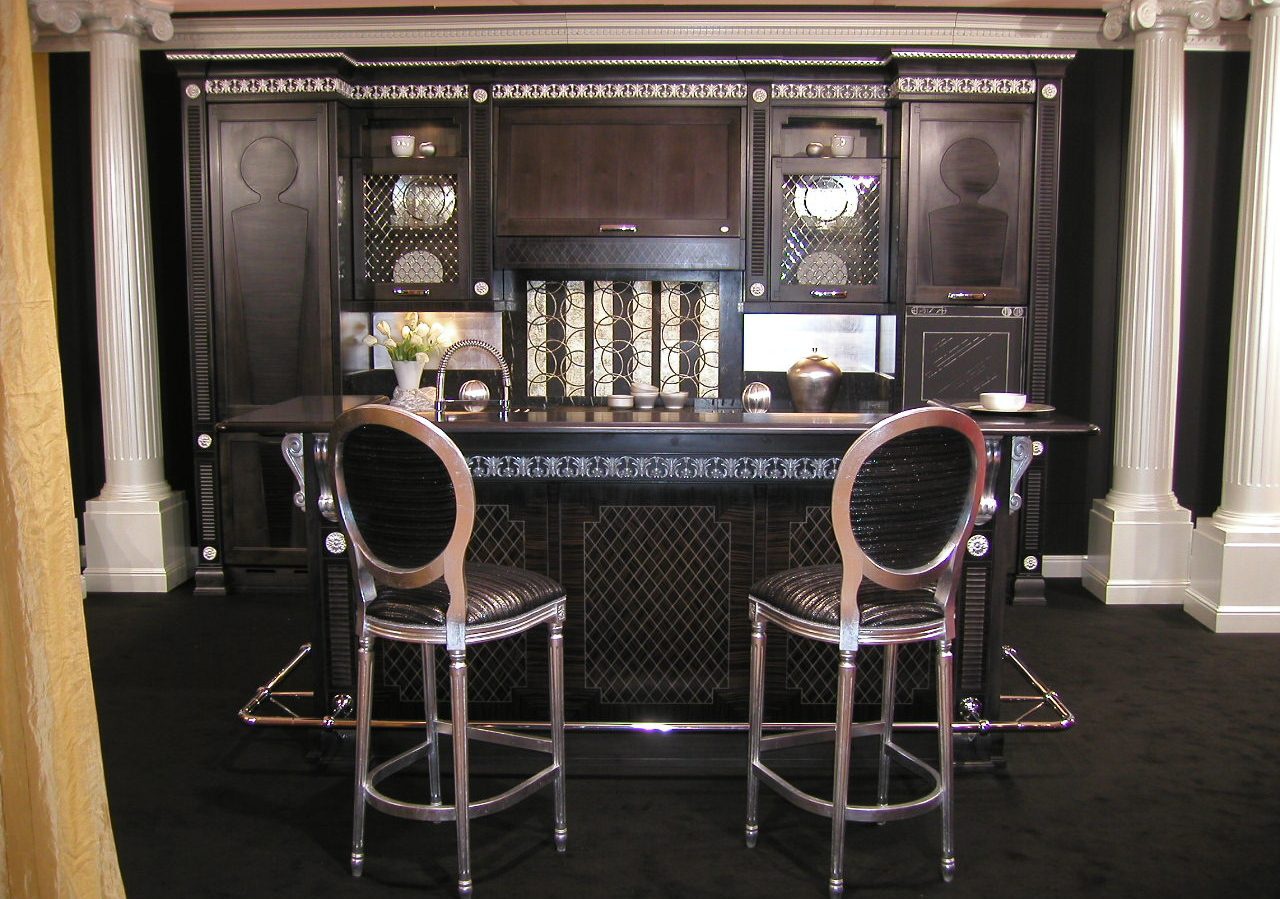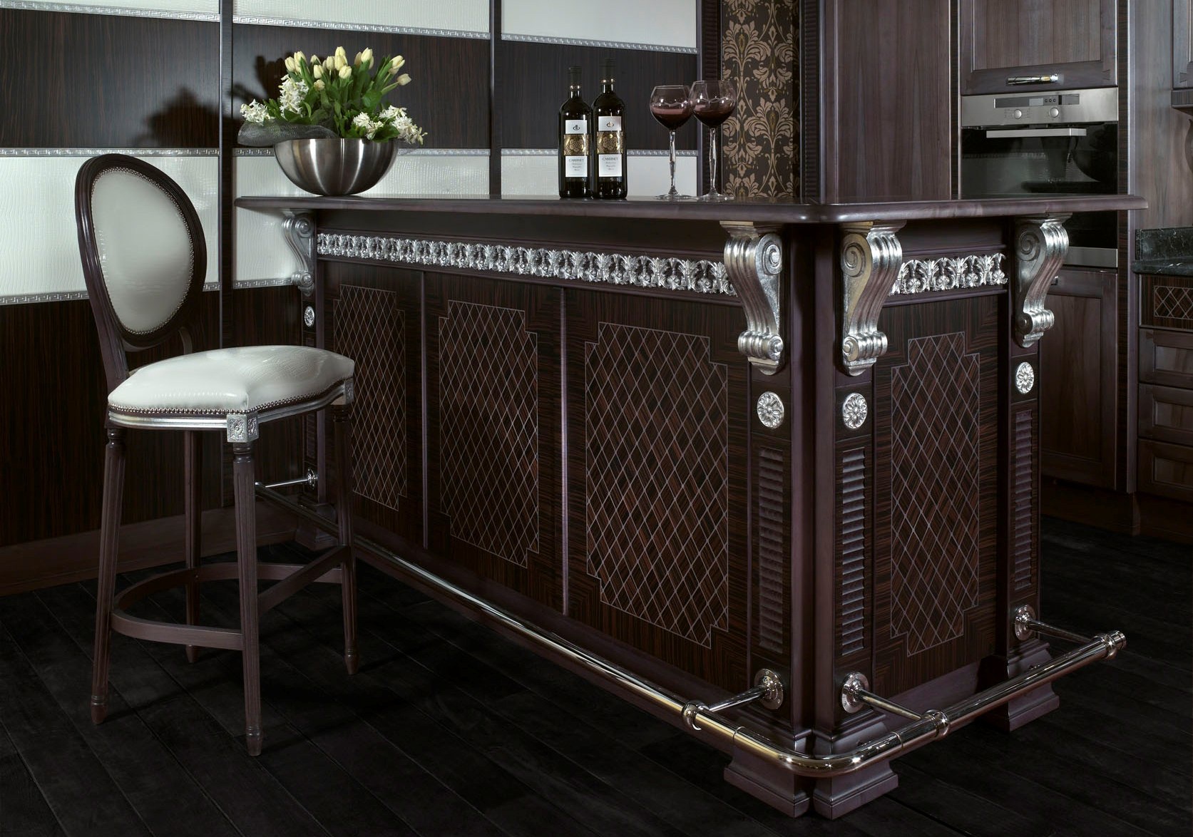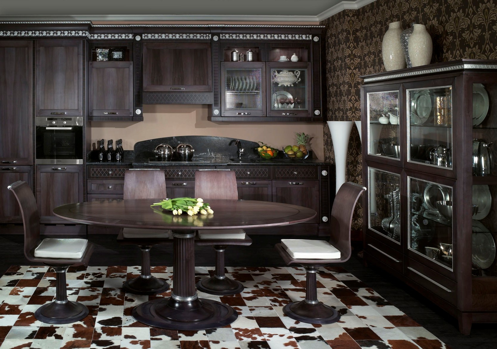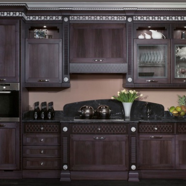 Kitchen with island MAJESTIC SILVER Corp MAJESTIC collection from the Italian manufacturer Arca. Kitchen set built in an eclectic neo-Renaissance. Characterized by the revival of ancient forms, combined with rich carving, ornament, and decoration in gold. For furniture used walnut wood and other softer woods.