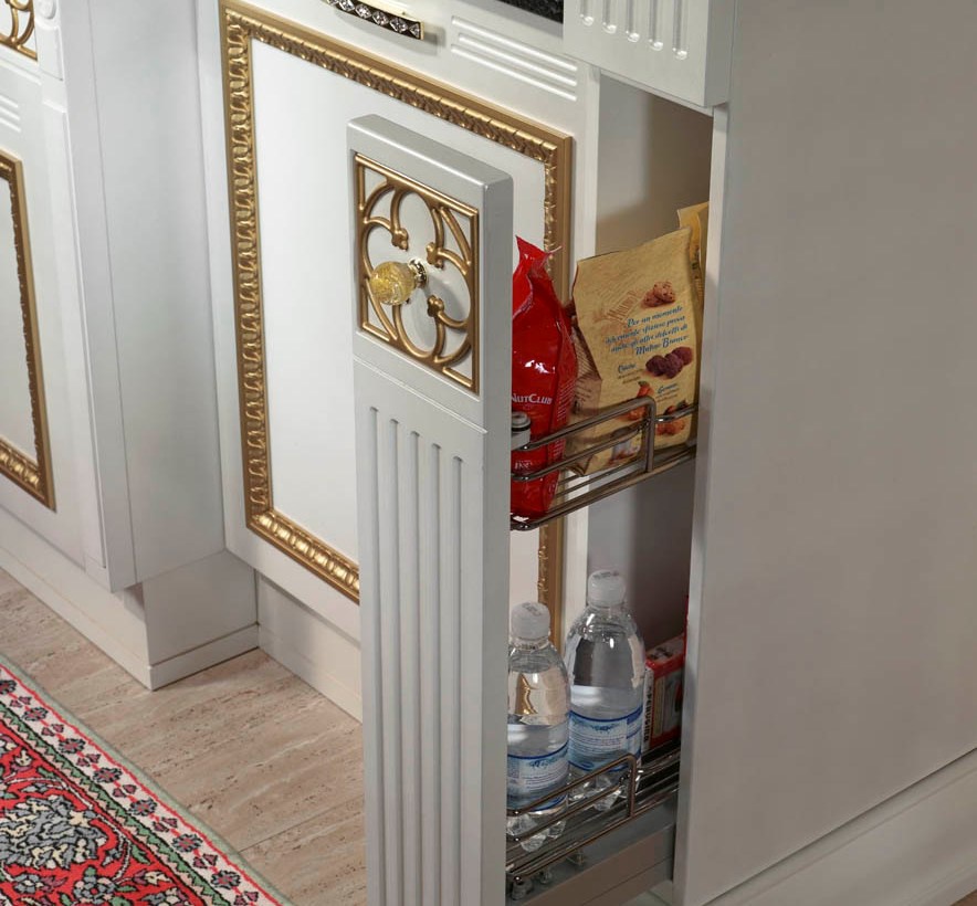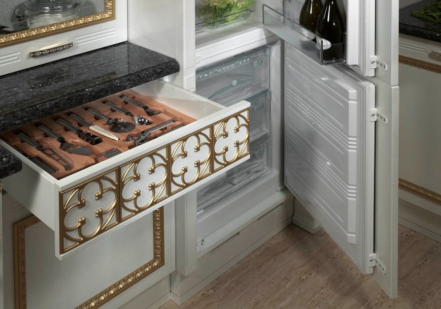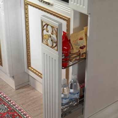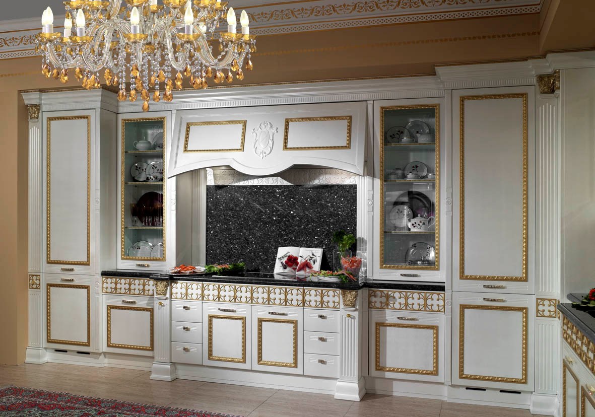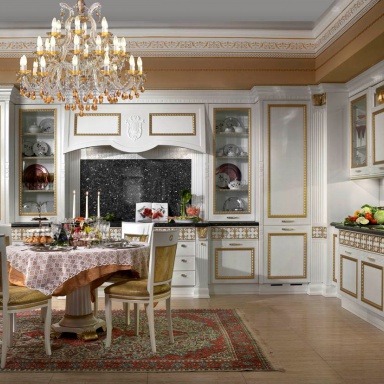 Kitchen set Prestige Prestige Rialto collection from the Italian manufacturer Arca. Functional kitchen set, built in an eclectic neo-Renaissance. Characterized by the revival of ancient forms, combined with rich carving, ornament, and finish under the silver. For furniture used walnut wood and other softer woods. This furniture will add uniqueness to any home.