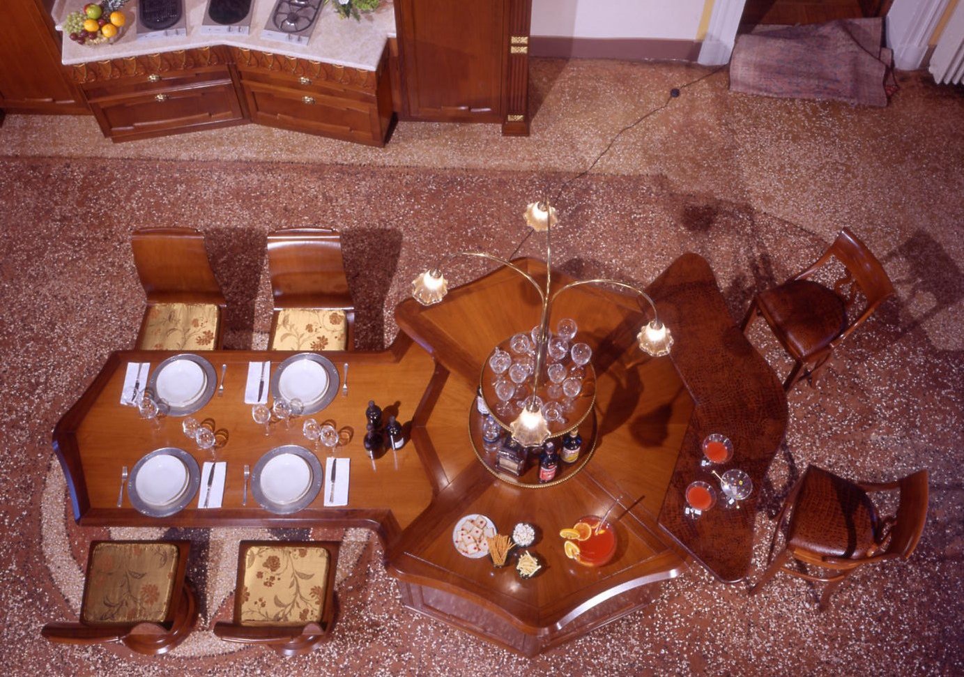 Kitchen with island Premiere collection Premiere from the Italian manufacturer Arca. Kitchen set made in a classic style with a hint of art Nouveau. Refined shapes combined with rich carving and ornamentation and decoration in gold. For furniture used walnut wood and other softer woods.