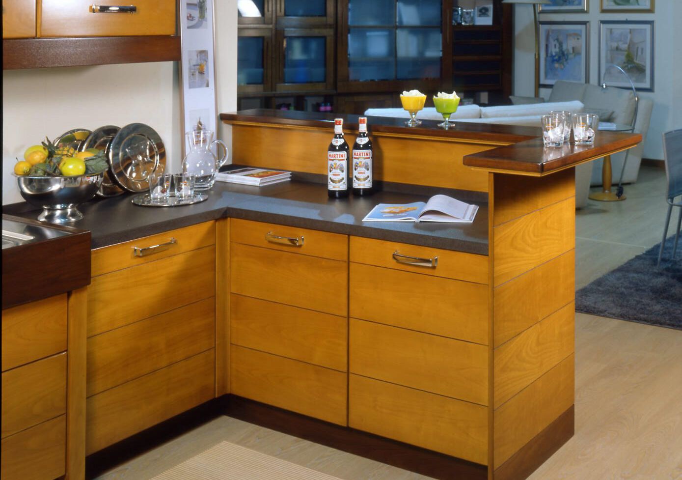 Kitchen with island collection Orizzonte Orizzonte e Vogue from the Italian manufacturer Arca. Kitchen designed in modern style with elegant design. For furniture used walnut wood and other softer woods. Finish of frames and facades of the number of items to choose from. Countertop stone with wooden edging. The functionality, finish and complex composite, allow to interpret all the needs of the customer.