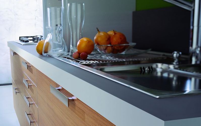 Kitchen (kitchen set) with the working surface of steel Tomassi, Laminati Аlluminia