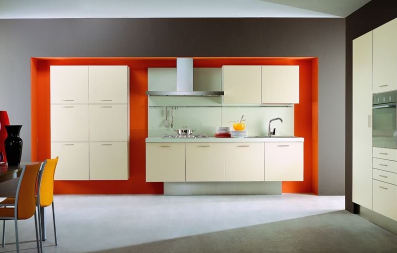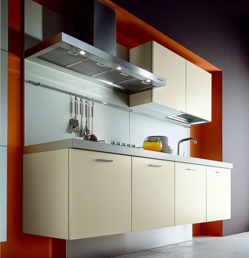 Kitchen Laminati Teuco from the Italian manufacturer Tomassi. Kitchen in a modern style. The frame is made of chipboard of class E1 with a low formaldehyde content. Facades finishing melamine film or glossy lacquer. The working surface is stainless steel. Offers a large selection of modular elements and their configurations.