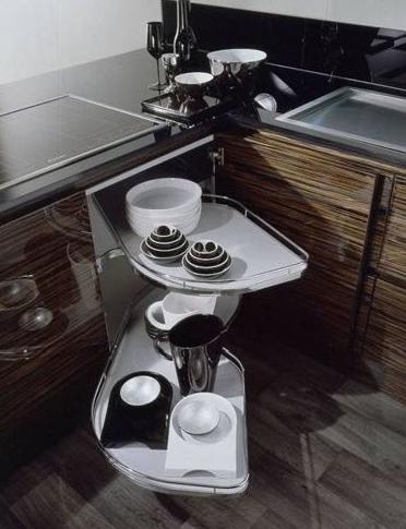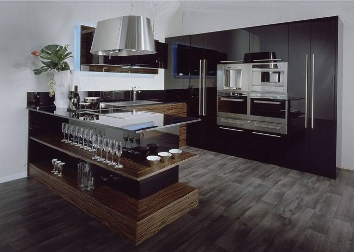 Kitchen set Medusa from the Italian manufacturer Tomassi. Kitchen in a modern style. The frame is made of chipboard of class E1 with a low formaldehyde content. The facades array in the veneer finish or MDF covered with high glossy lacquer. Work surfaces are laminated. The original design highlights decorative accessories in chromed metal.