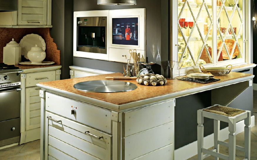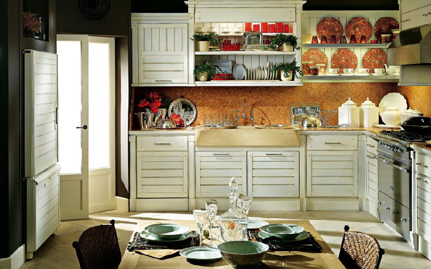 Bamboo kitchen set from the Italian manufacturer Brummel, a collection of Bamboo. Kitchen in country style. The frame is made from solid wood. Finish options: aging, Matt lacquer, walnut veneer, oak wenge. Work area - marble.